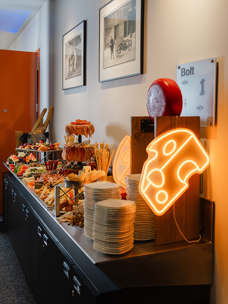 Rent both Peace and Potato meeting rooms to take over the entire third floor for your event. After your meeting, host a fun team gathering on Patio 13 or at MOTOR Bar & Restaurant and toast to a productive day on our campus.
