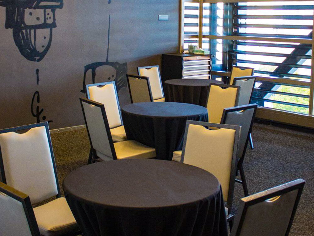 This intimate meeting room at the Harley-Davidson Museum is perfectly sized for small team gatherings, brainstorming sessions, and breakout meetings. Featuring large windows with scenic views of the Menomonee River, the space is filled with natural light to keep ideas flowing.
