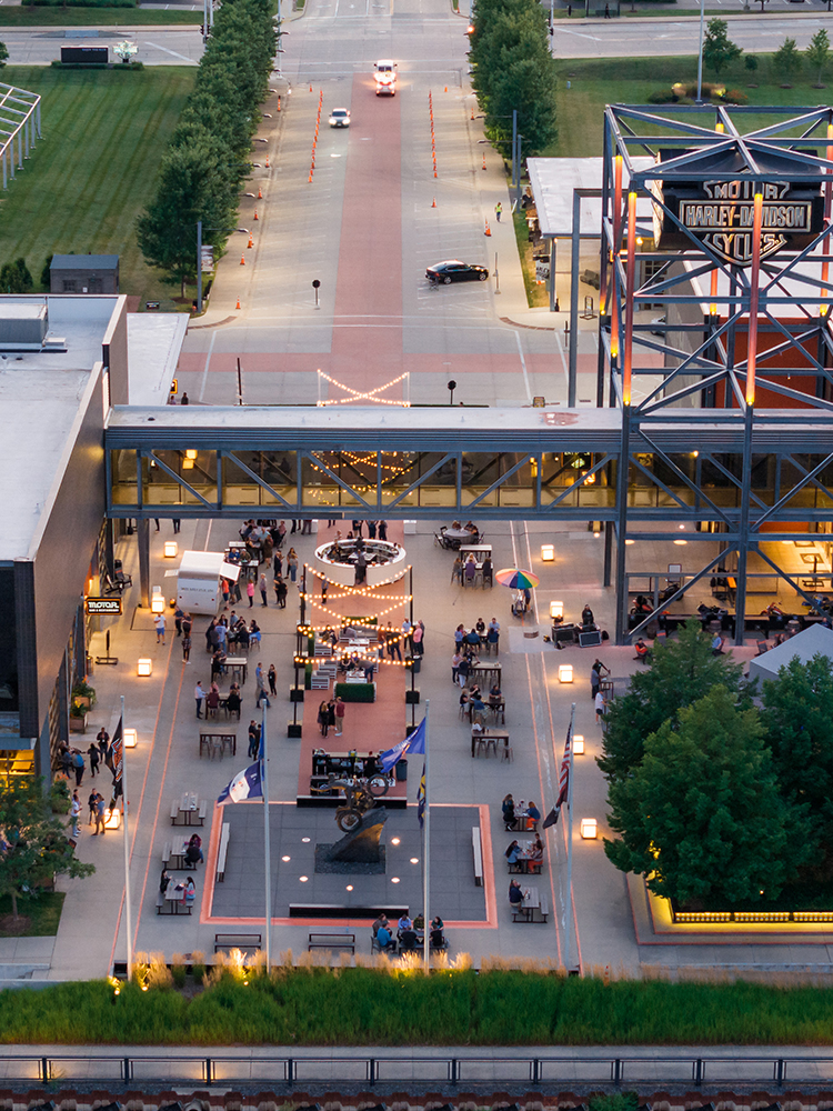 With this option, you’ve rented the full H-D Museum campus, utilizing all of our event spaces. However, if you’re looking for additional areas for pre‑ or post‑event activities; Davidson Park at the Harley‑Davidson Headquarters is also available for rent.