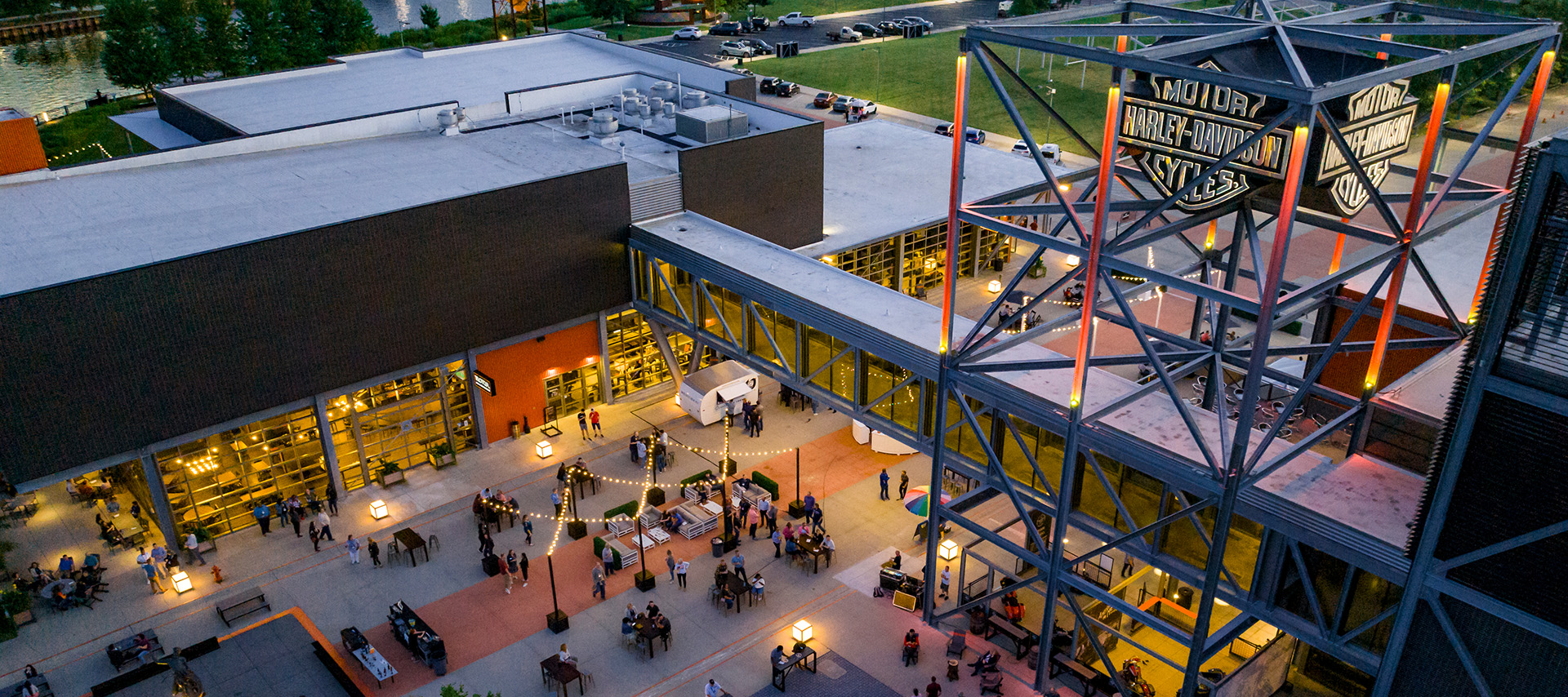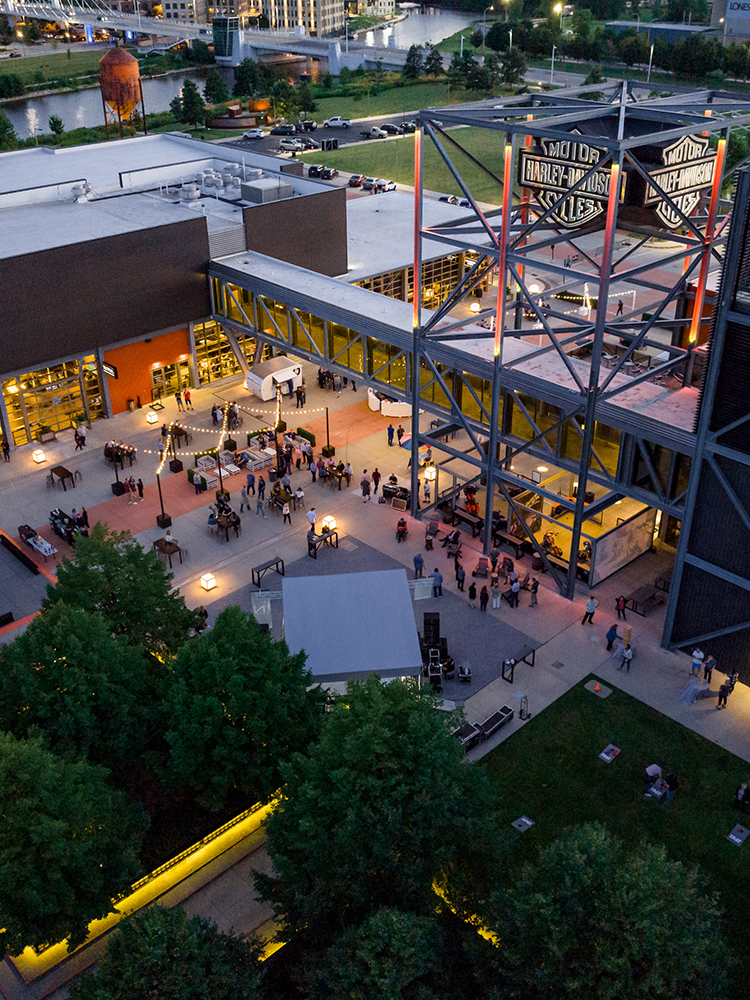 Host an unforgettable event by buying out the entire Harley-Davidson Museum campus, transforming 20 acres of iconic Milwaukee riverfront into your exclusive event destination. Perfect for corporate gatherings, high-octane celebrations, galas, and large-scale parties, this full campus buyout grants exclusive access to five versatile indoor event spaces, expansive outdoor plazas, and unique museum venues. Infused with legendary Harley-Davidson culture and offering stunning riverfront views, state-of-the-art facilities, on-site parking, and coach bus access, the campus delivers everything needed to create a memorable, high-energy experience. Partner with our expert event team to plan your epic, full-throttle museum takeover and make your event truly stand out.