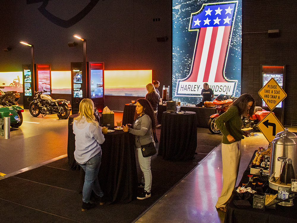 Host your event in the Experience Gallery—a sleek, museum-quality space surrounded by legendary Harley-Davidson history and design. With dramatic lighting, iconic bikes, and an atmosphere that feels both exclusive and unforgettable, it’s a VIP setting that’s impressed many and is ready to wow your guests next.