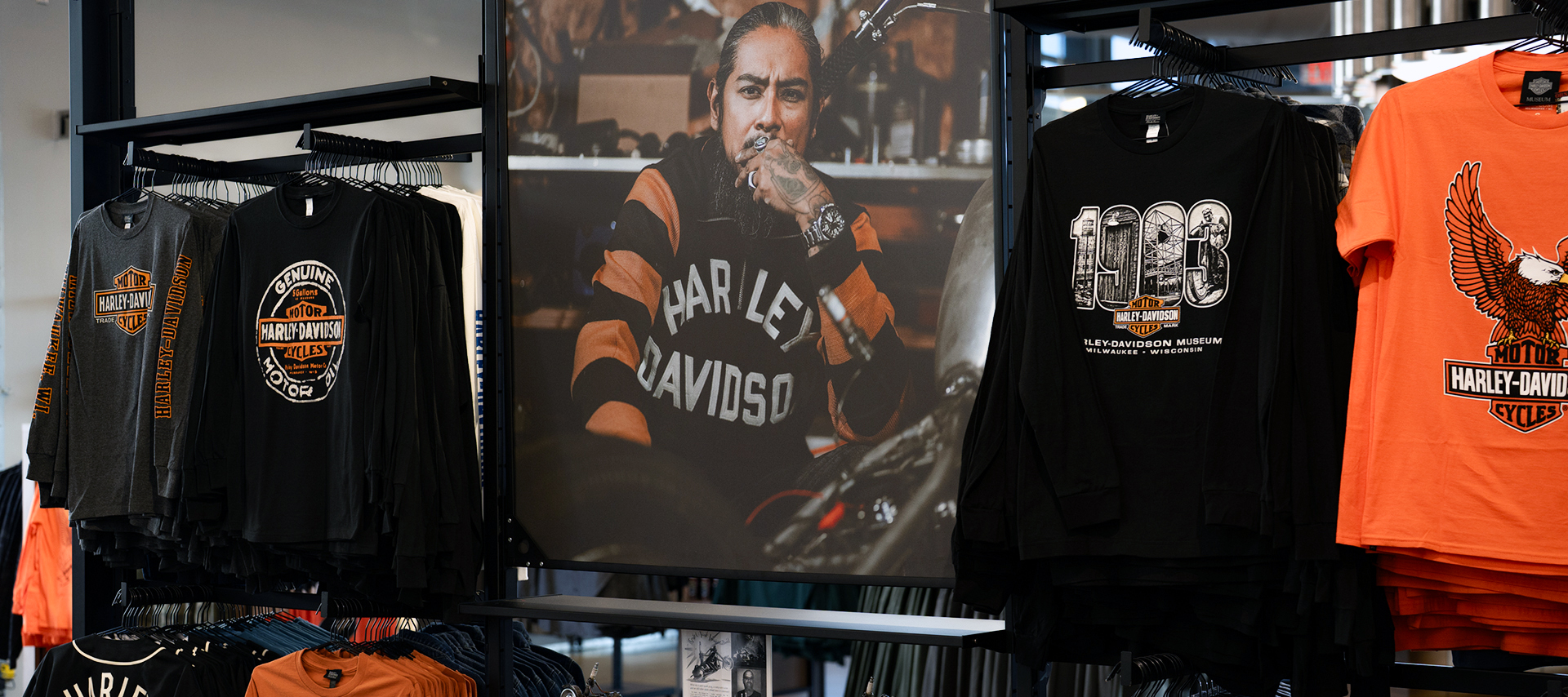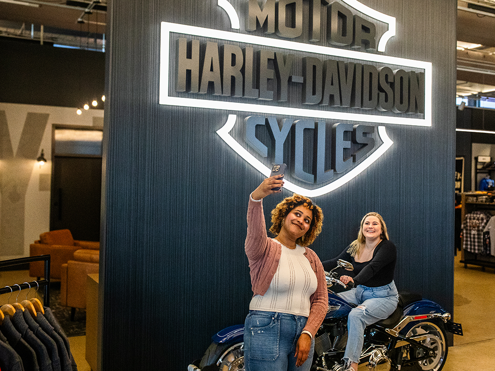 Choose a jacket, sweatshirt, tee or hat, then personalize it with legendary H-D patches. Or personalized screen print on a select tee. Each piece is created on the spot, so you leave with a one-of-a-kind piece that’s uniquely yours.