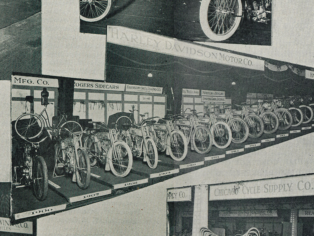 As the 1919 Chicago Motorcycle Show approached, the founders of Harley-Davidson planned to do something different. In addition to the newest motorcycles and bicycles for sale, they wanted a historical display of H-D motorcycles going back to the earliest years of production. After only 16 years, the Harley-Davidson Motor Company was proud of its history and innovation.