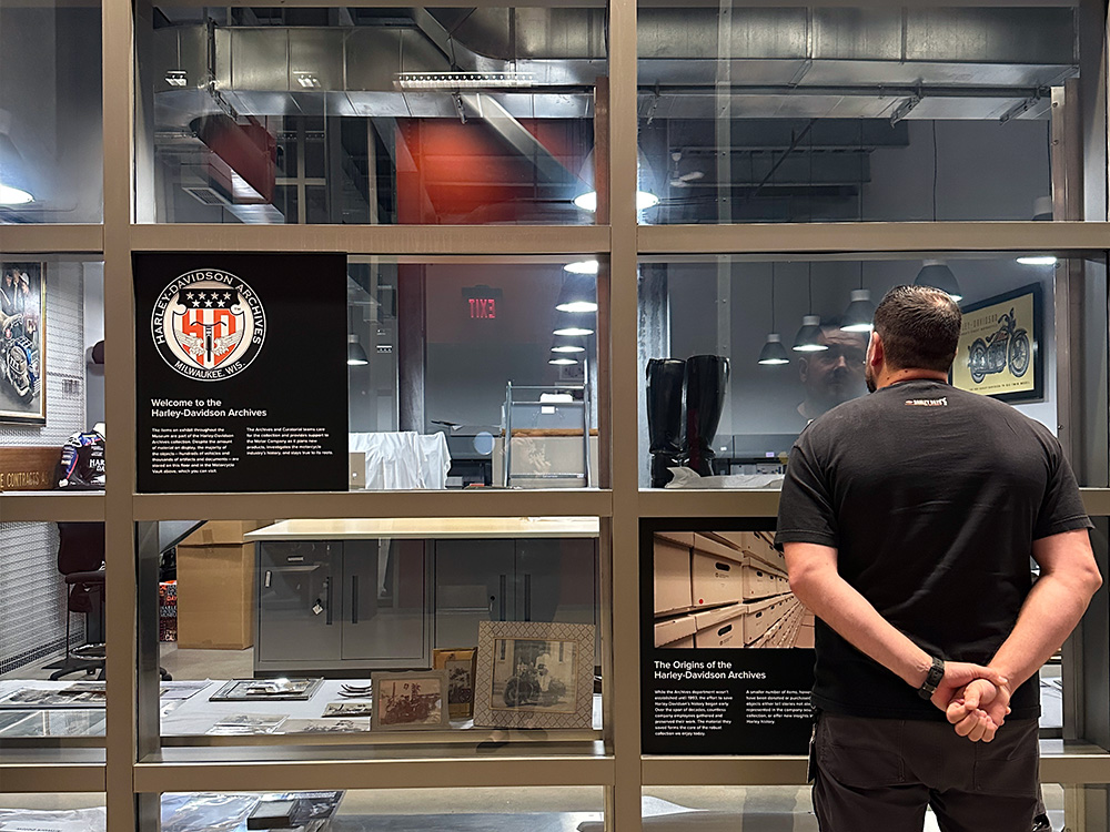 Although the Archives is not open to the public, Harley-Davidson Museum visitors can view some of the archival workspaces while exploring the museum. Guests can book a Beyond the Gate Tour or VIP Tour to get behind the scenes.