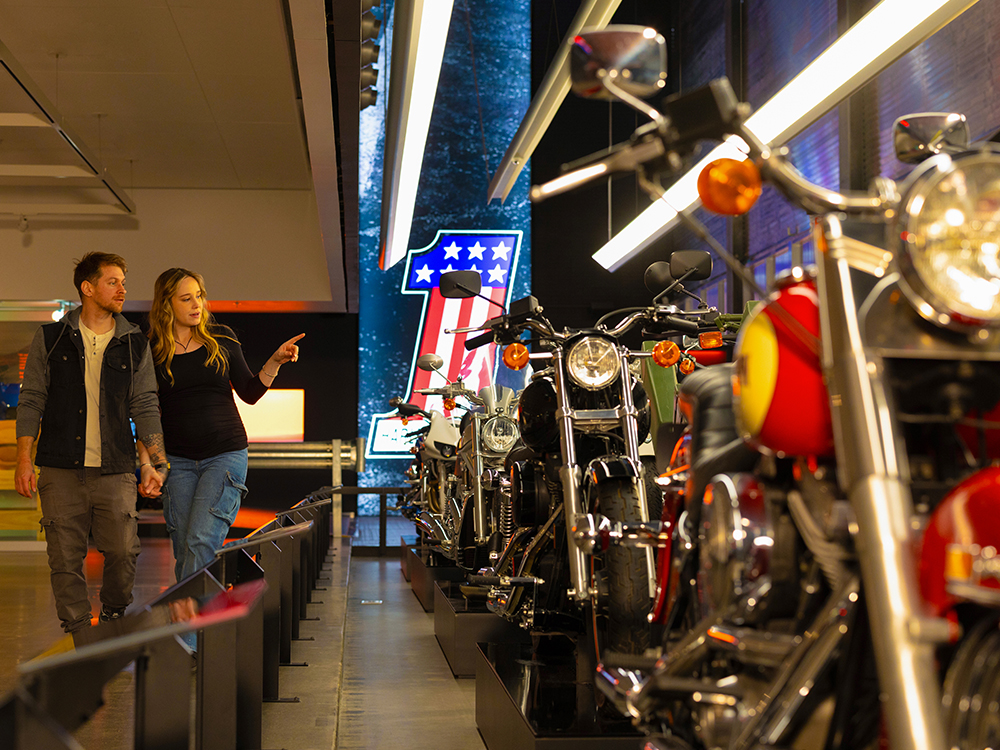 Exploring the H-D Museum can take two or more hours, but plan for at least a half-day to enjoy the full campus experience – H-D Shop, Factory Outlet Store, MOTOR Bar & Restaurant with a riverfront patio. Extend your adventure with a Powertrain Operations Factory Tour in nearby Menomonee Falls, a stop at H-D Headquarters and Davidson Park, or a visit to local dealerships.